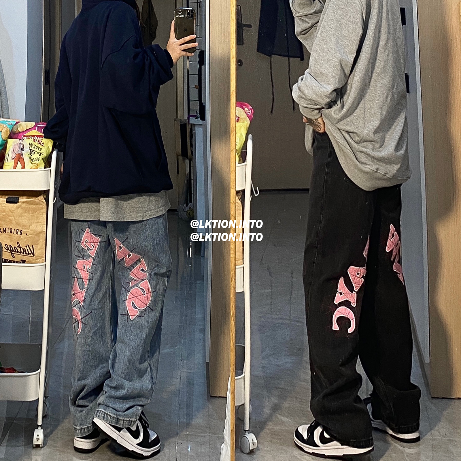American Vibe Pants High Street Tide Ins Retro Embroidered Jeans Man Design Feel Hiphop Fried Street Scrap Pants