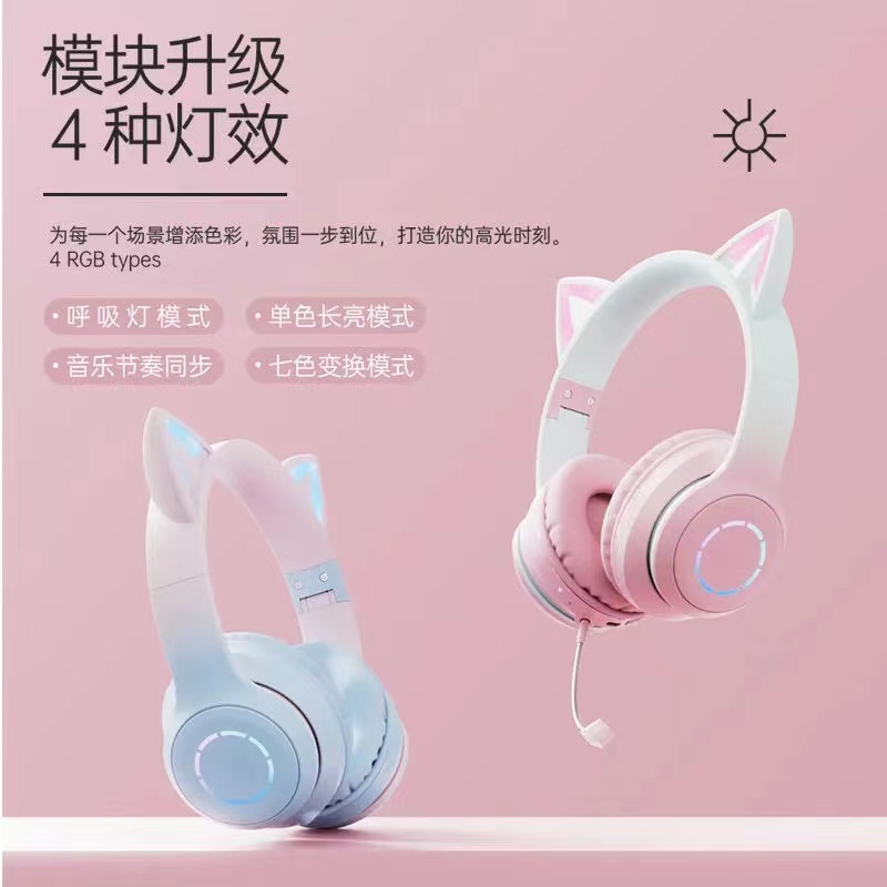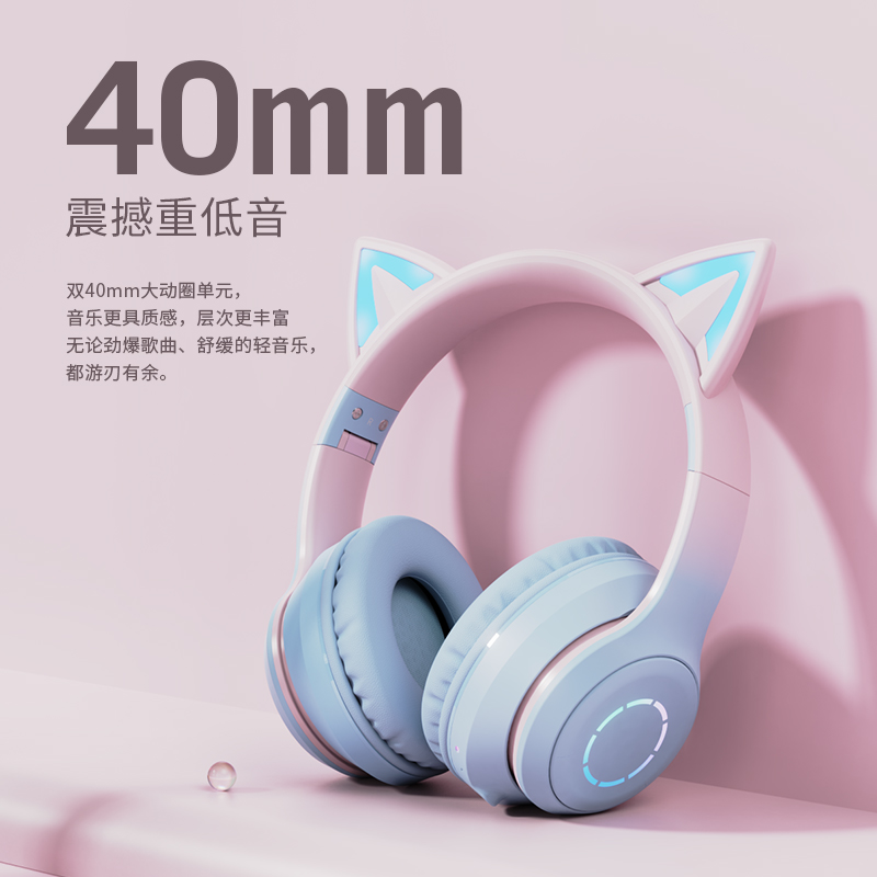 True wireless head-mounted cat ear bluetooth headset wired headset noise reduction online class game high-value girls
