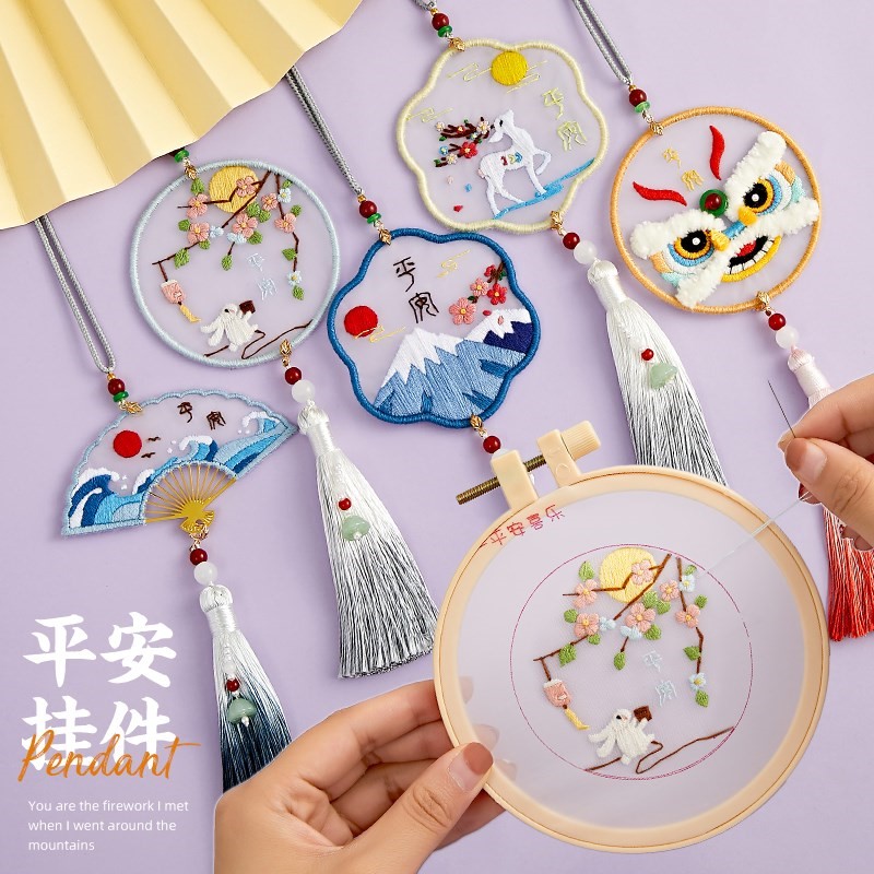 Vehicular safe-in-car pendant piece diy handmade material to make car in-car cross stitch back mirror hanging decoration embroidery