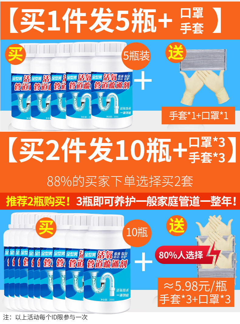 Sewer pipe dredging agent toilet toilet kitchen floor drain plugged strong dissolving agent household descaling artifact