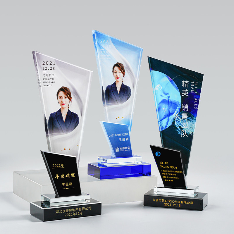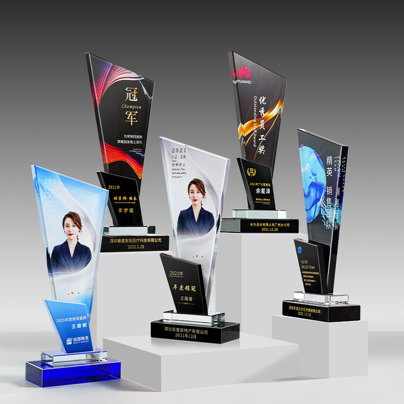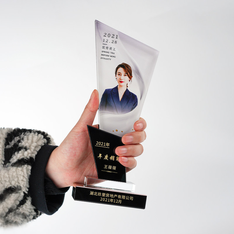 Crystal Trophy Customized Annual Meeting Upscale Atmospheric Creative Excellence employees book a lettering glass champion medals to be made