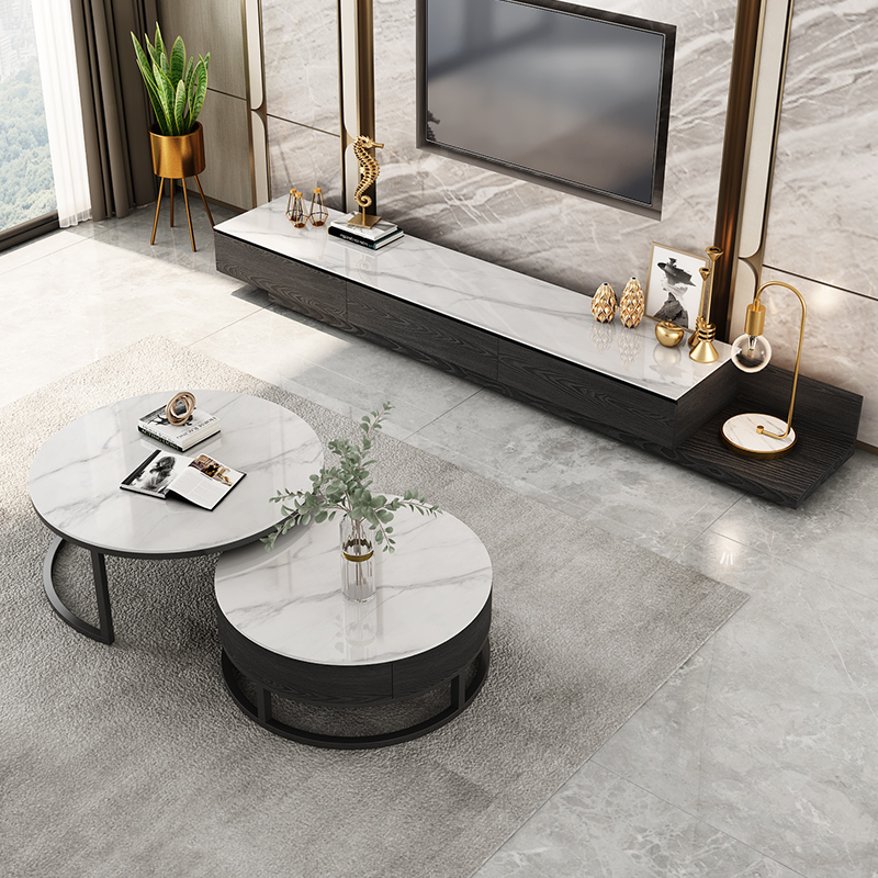 Slate bright surface Nordic style telescopic coffee table TV cabinet combination modern light luxury small apartment storage living room high-end sense