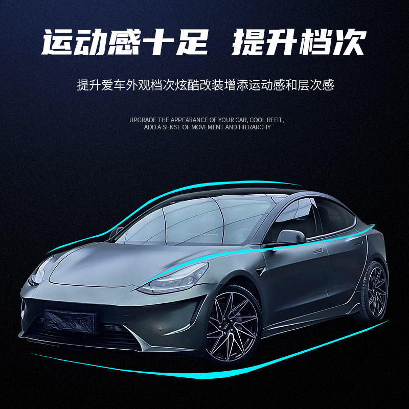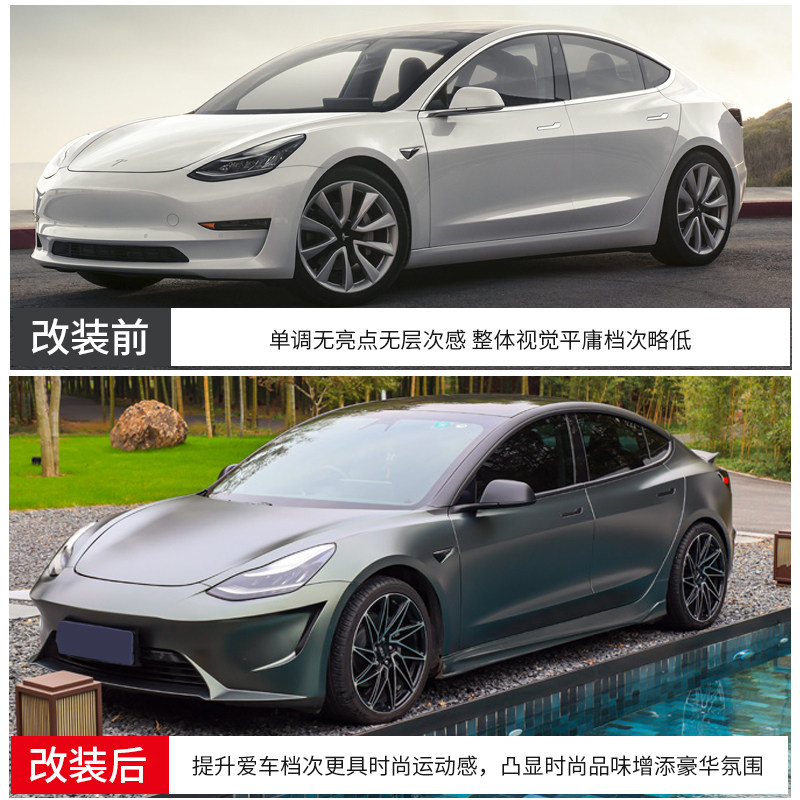 Suitable for Tesla model3 flying shark large surround front and rear bar carbon fiber tail car special accessories modification