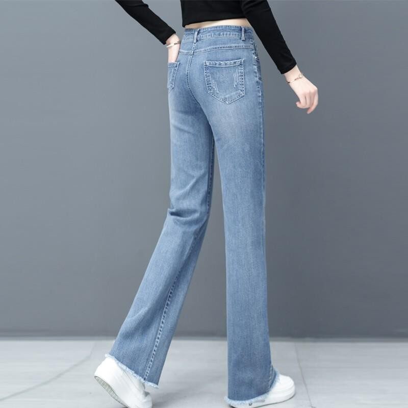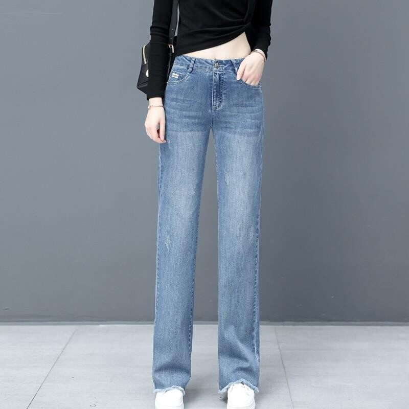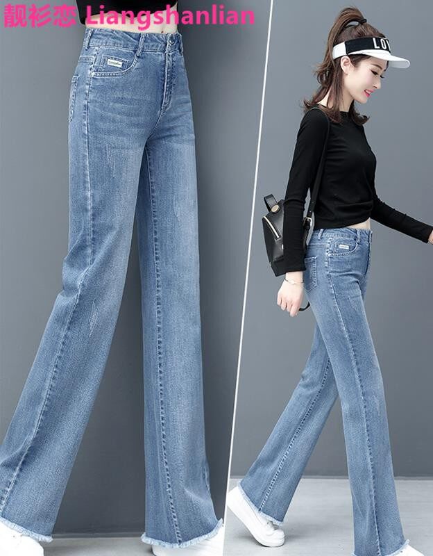 Sandro Blanca raw-edged jeans women's high-waisted loose lengthened drape wide-leg plus velvet straight-leg mopping pants