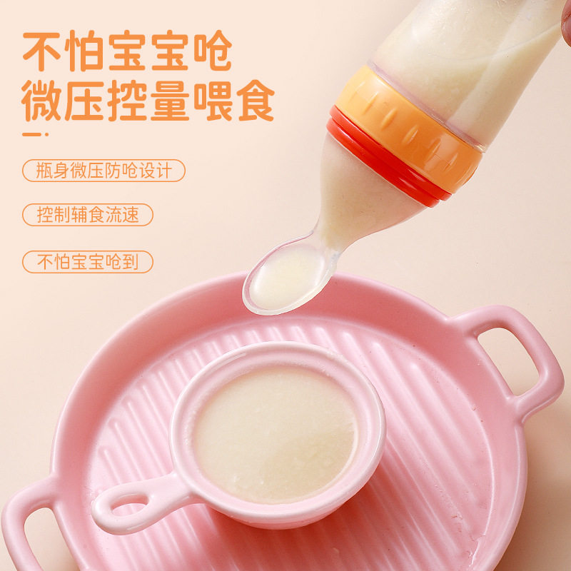 Baby silicone Silicone Rice Burnt Bottle Infant Squeeze Complementary divinity Divine Instrumental Newborn drink Milk Drink Congee with Soft Spoon-Taobao