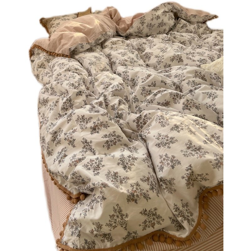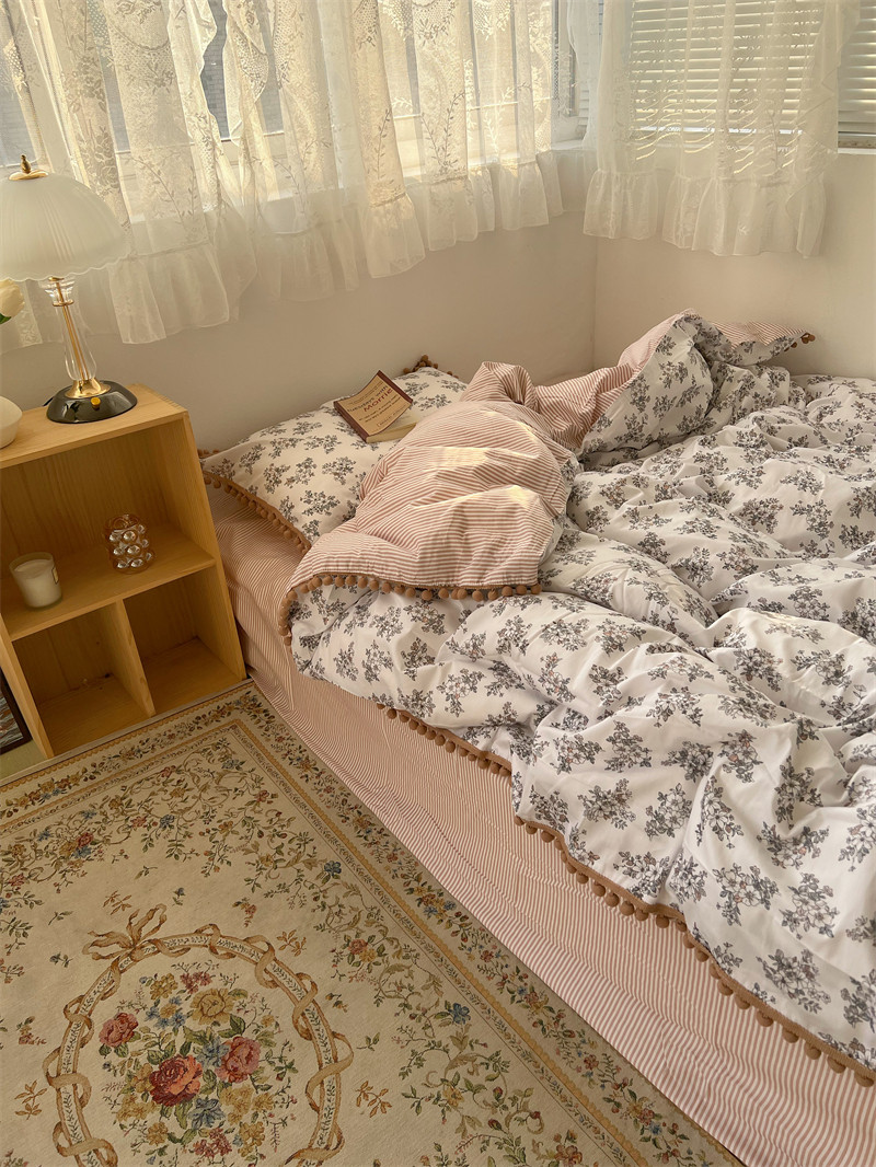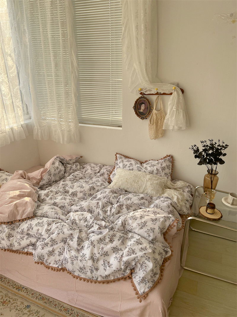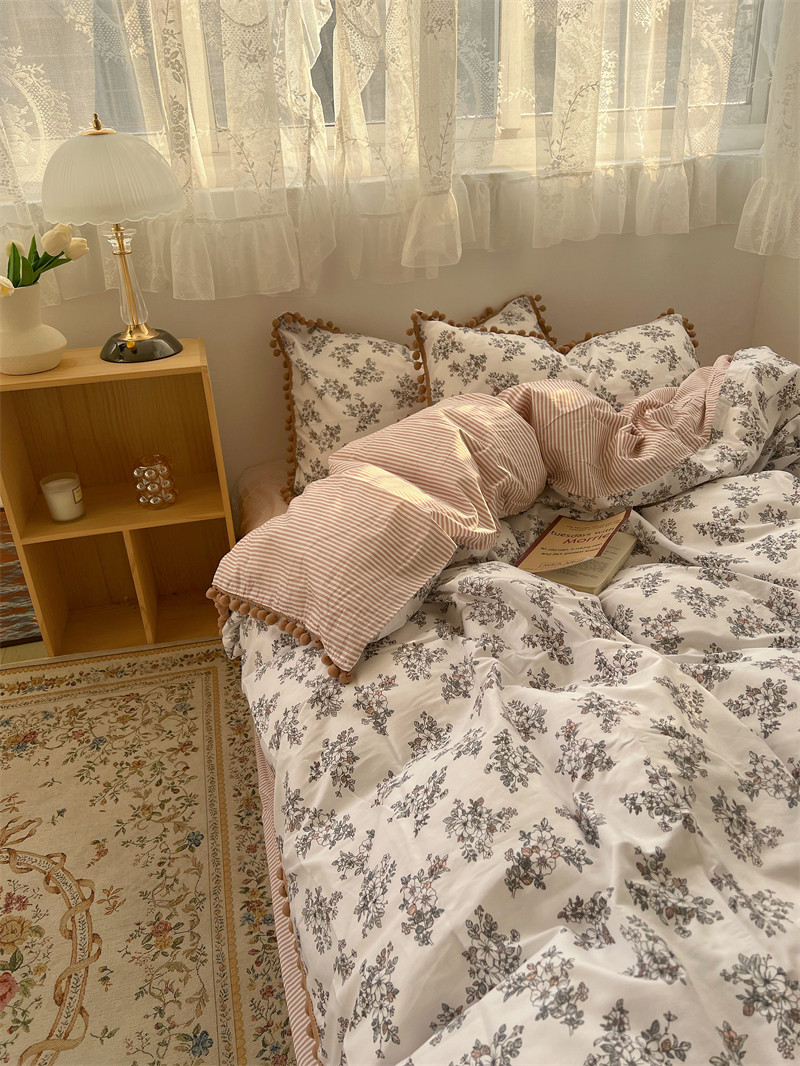 Pear Dream Retro Heben Black White Flowers Pure Cotton Four Pieces Full Cotton Linen Quilt Cover Ball Girl Lace bedside bedding