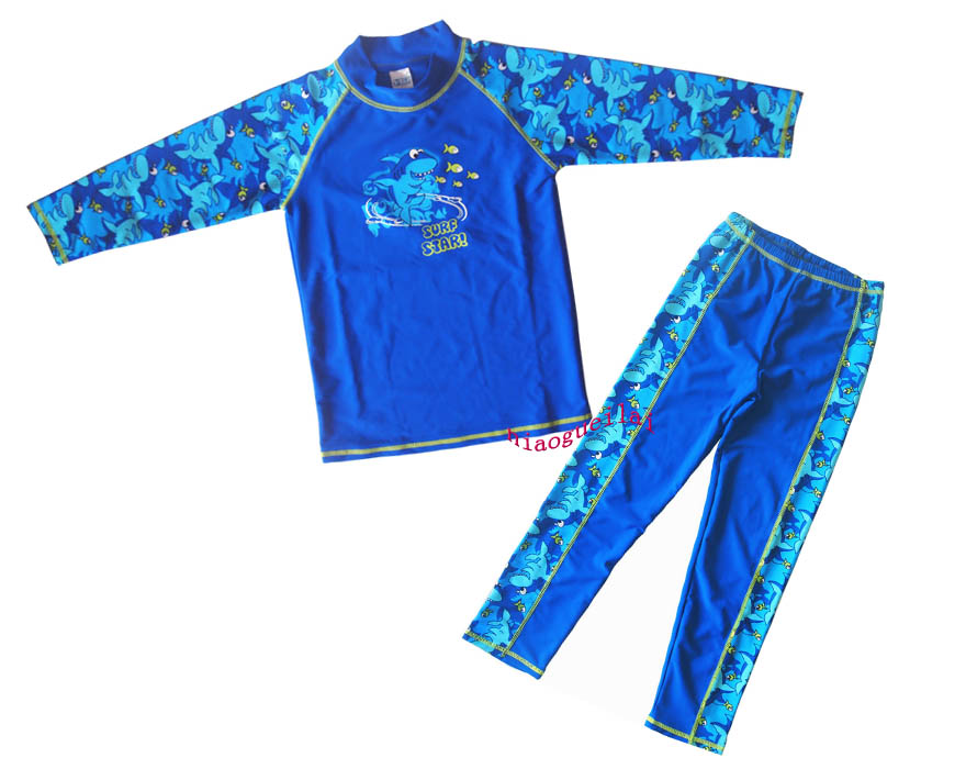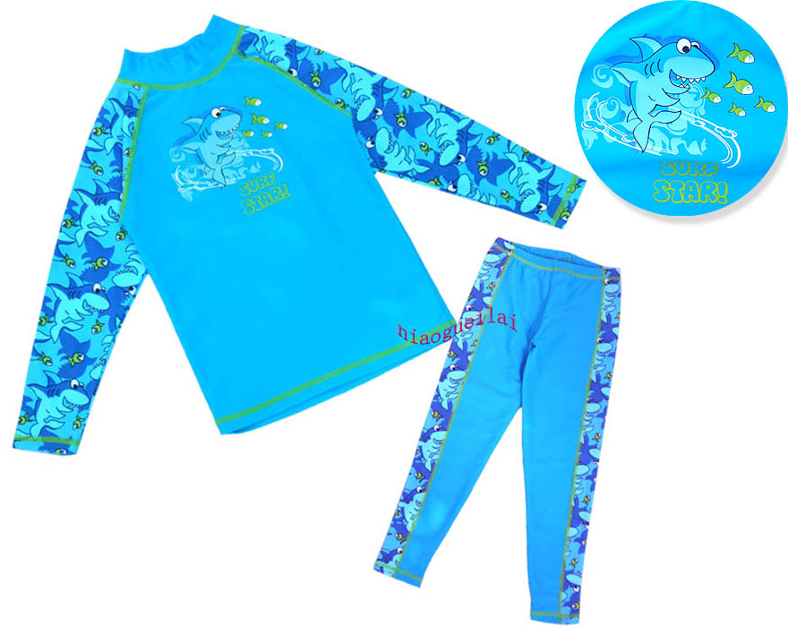 Boys and girls long-sleeved trousers two-piece surfing suit small, medium and large children's swimsuit snorkeling neck protection sunscreen hat quick-drying