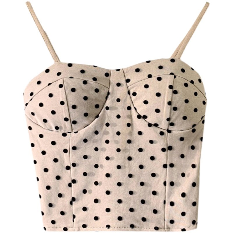 Design sense niche flocking small wave point sleeveless vest wrap chest outside wearing a thin and spicy girl web yarn with chest cushion obliteration vest