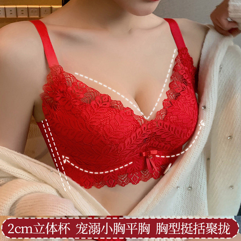 This life year underwear set woman with small breast gathering steel-free ring to collect sub-breast bra sexy latex red tiger bra