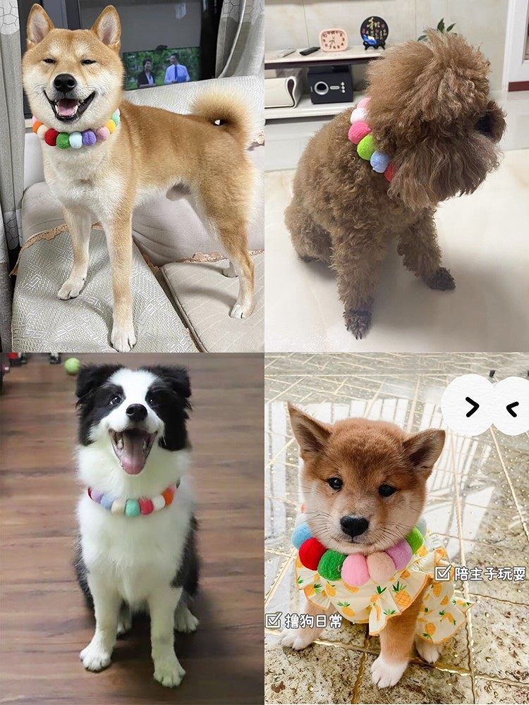 Small and medium dog collar colored hair ball collar decoration products cute Chai Dog Keji Net red photo pet accessories