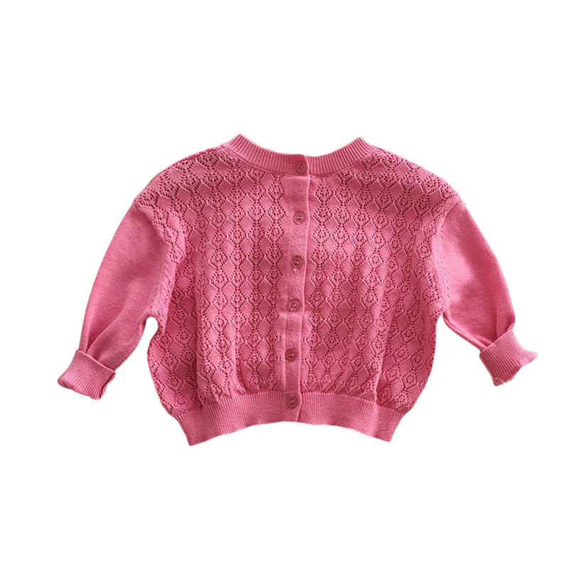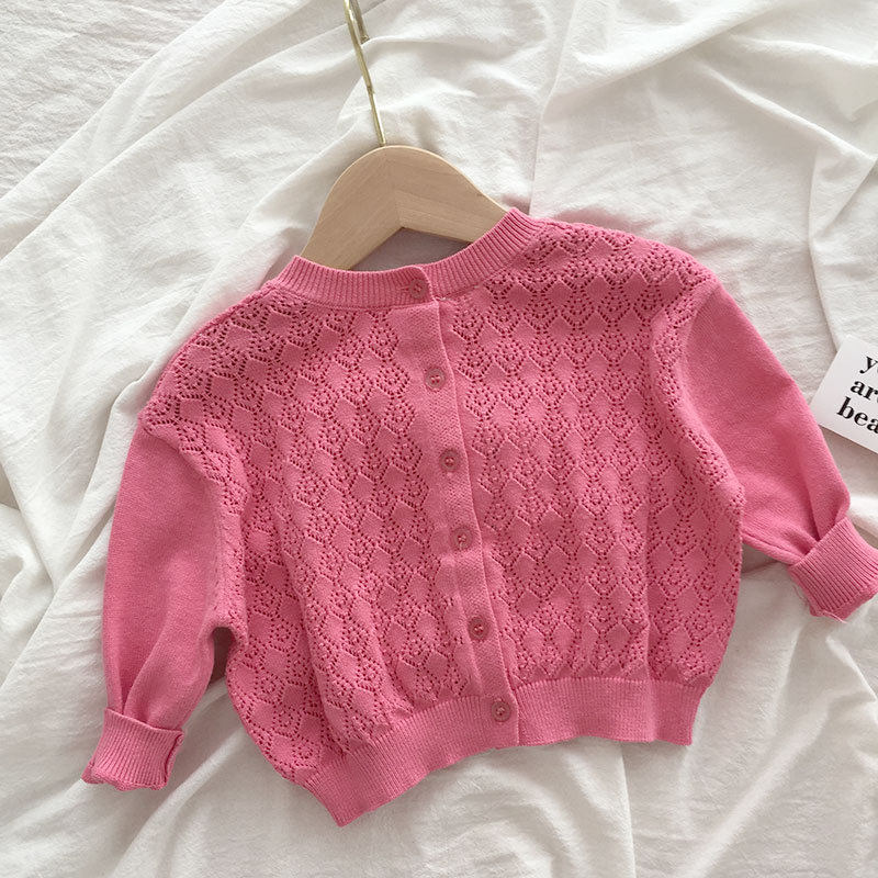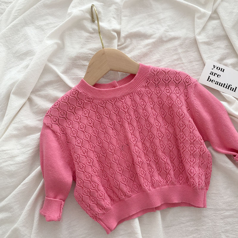 Korean Boy Dress Spring Clothing Baby Hollowed-out Knitted Blouse Foreign Girl Thin-style cardiovert jacket baby out of clothes