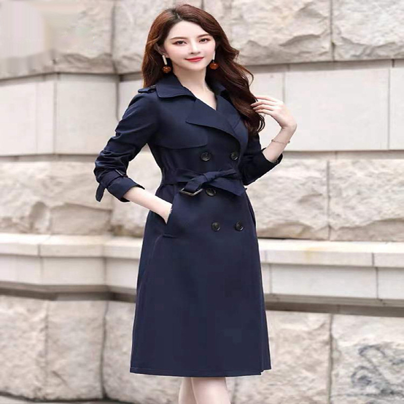 Windbreaker women's mid-length double-breasted button 2023 spring and autumn new Korean version of British style high-end temperament coat coat women