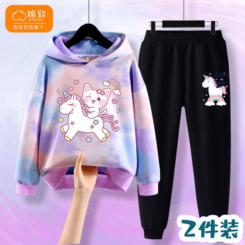 Balacara's cotton-to-girl thick T-shirt spring autumn children suit women's 2022 new girl autumn dress hyphens