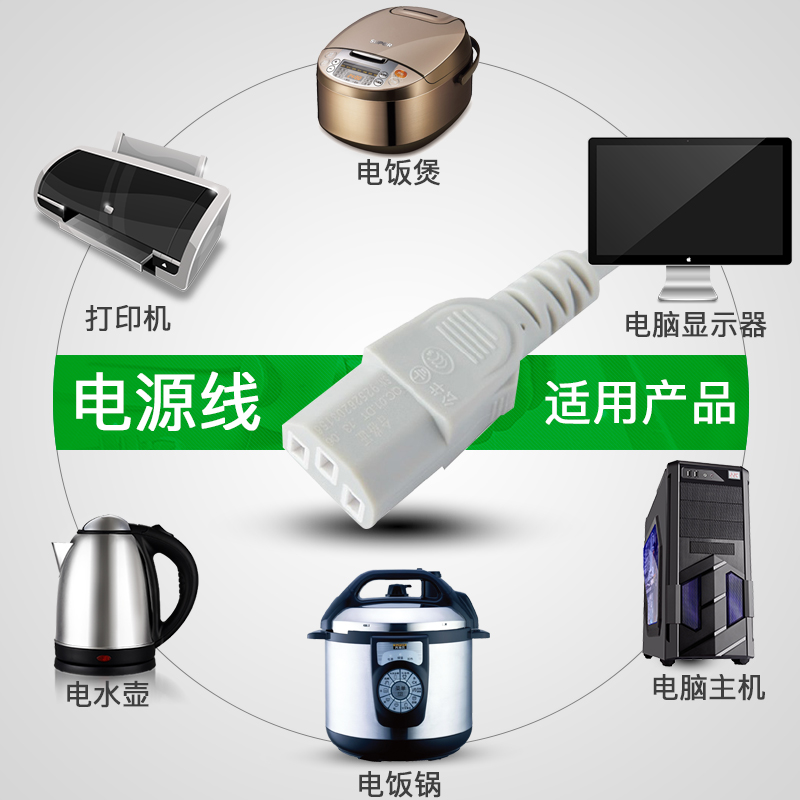 Bull Power Cord Computer Host Display Electric kettle Three-core Three-hole Plug Universal Connection Cable