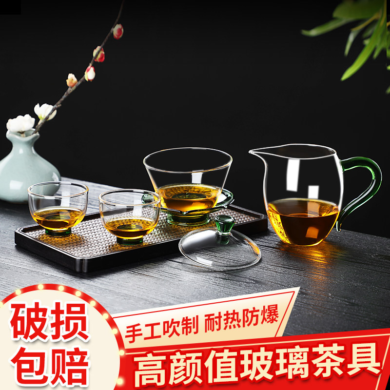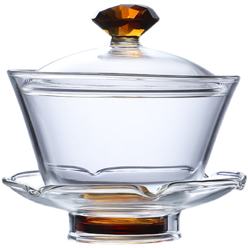Thickened glass Sancai cover bowl household tea set kung fu tea cup single high temperature resistant tea bowl with lid hand grab pot