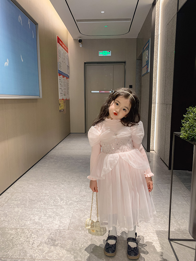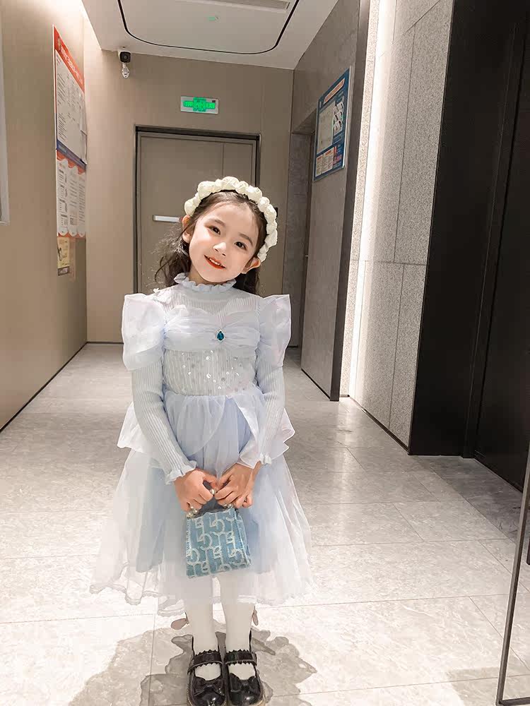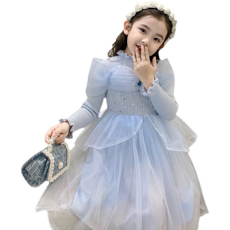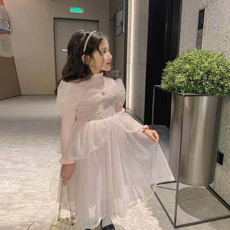 Girls dress foreign school knitted mesh dress fairy spring and autumn 2022 new fashionable baby princess skirt birthday skirt