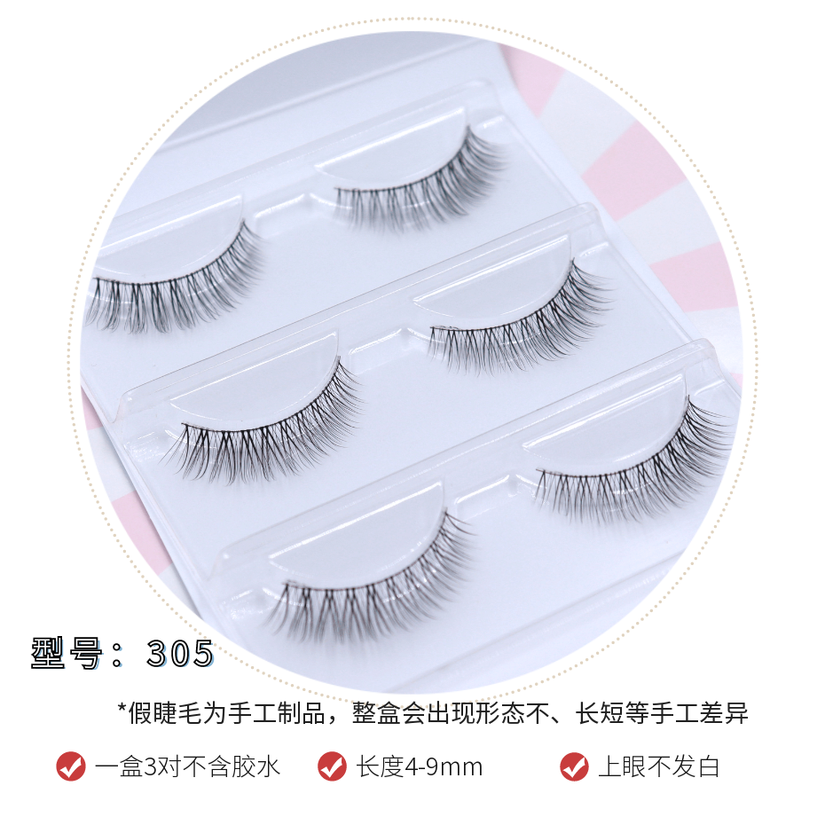 Snow Rinay False Eyelash Woman natural simulation of dense inner double single eye leather black stalk micro hard stalk eyelash grinding tip 305-Taobao