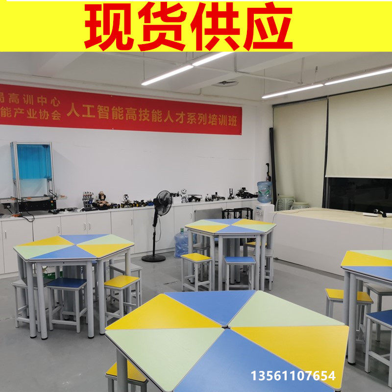 Student hexagonal combination table steel frame triangle trapezoidal art training maker wisdom AI classroom campus desks and chairs