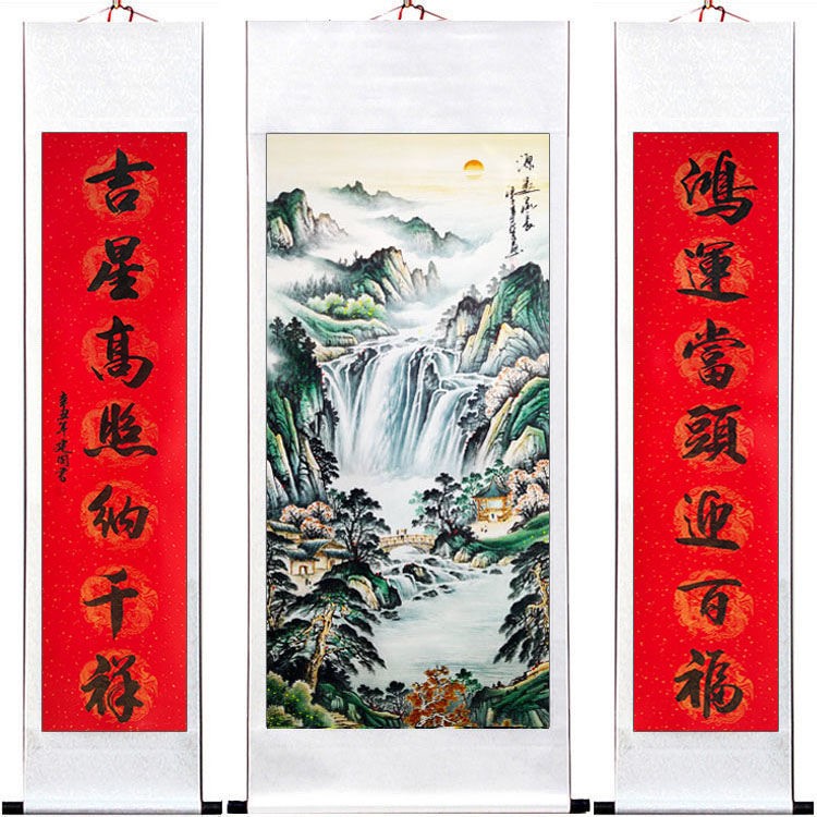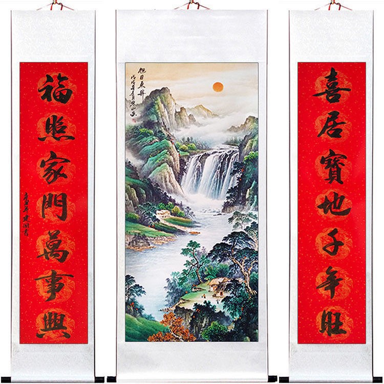 Dan 5 single picture without couplet 170*70 cm Red Happiness 1 Rising sun height 170 total width about 180 Jin Anjin 1 pine 2 height 170 total width about 180 Lucky Star Fortune 1 Caiyuan height 170 total