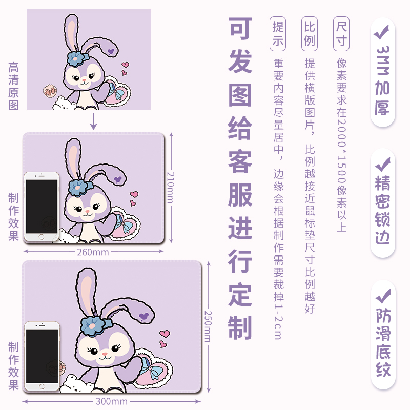 Cartoon Cute Purple Small Rabbit Small Slip Rat Cushion Small Fresh Girl Girl Thickening Lock Side Office Ins Wind Wrists Computer Slimy Mat Students Learn Desk Customizable Patterns
