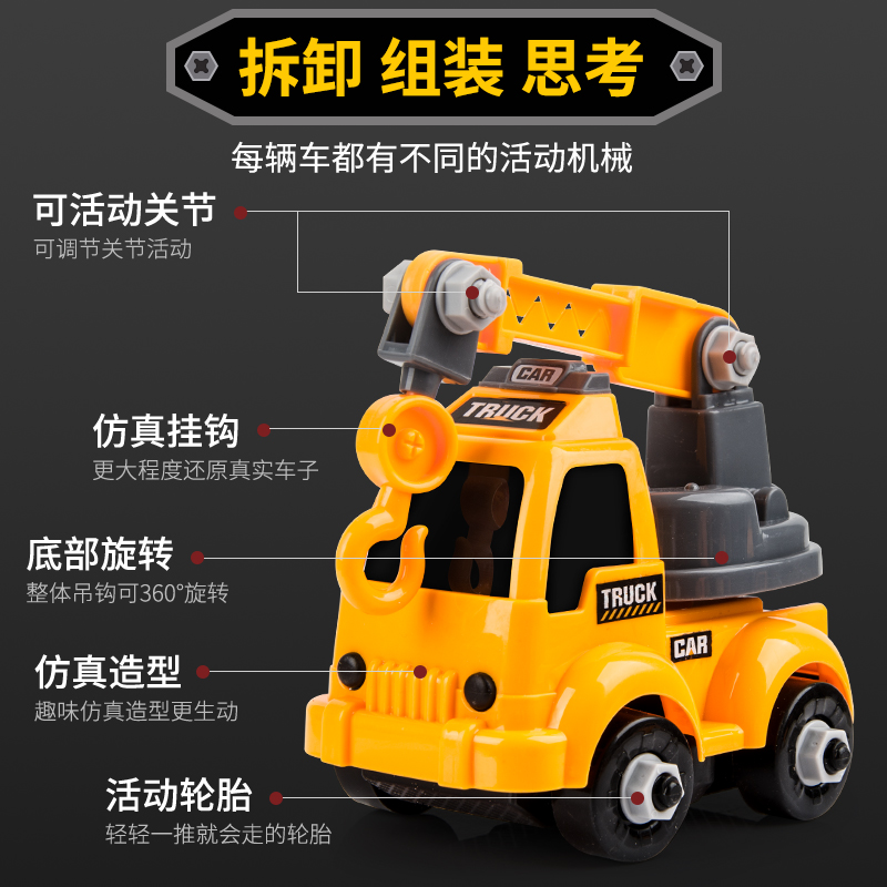 Disassembly engineering car (random one) removable engineering car 4 pieces of removable fire truck 4 pieces Removable Sanitation Car 4 pieces Luxurious Disassembly Cars 12 pieces of cover