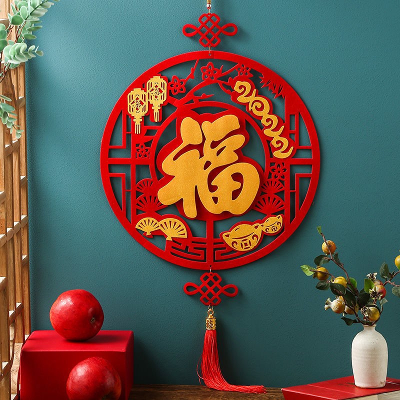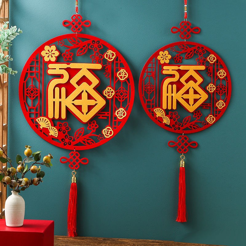 Lunar New Year hanging decoration 2022 tiger large red lantern small Chinese knot dining hall light extravagant mall class to earn Hufu