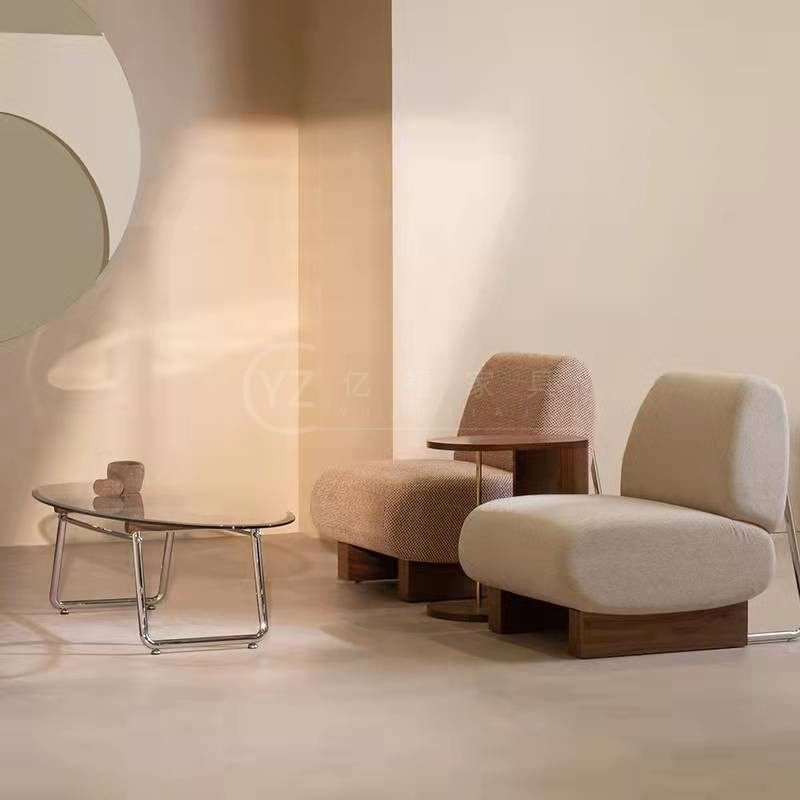 Nordic Minimalist Atmosphere Small Household Type Living Room Fabric Sofa Chair Creative Metal Casual Chair Designer Solid Wood Single Chair