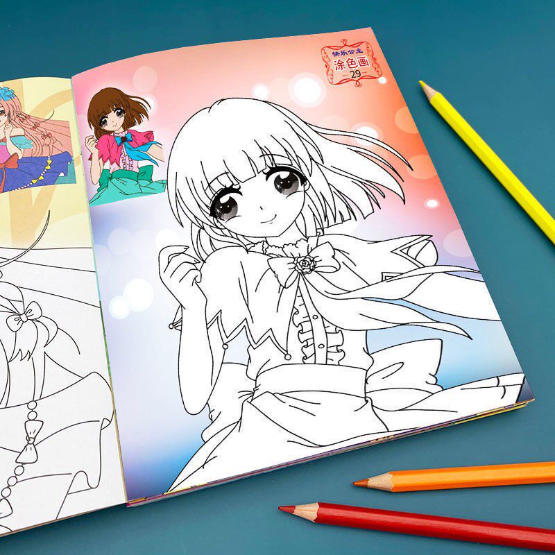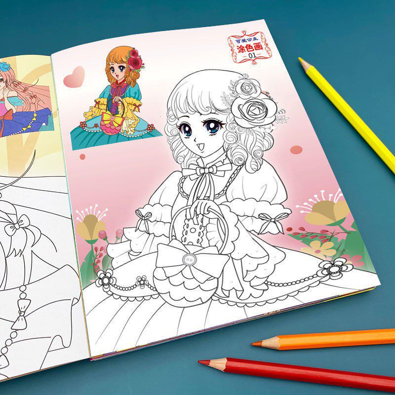 3-6-8 Kindergarten primary school students painting and painting this painting children's graffiti coloring painting girl princess coloring painting book
