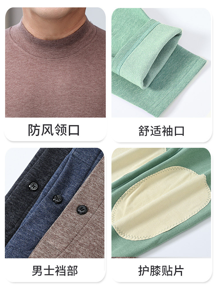Middle-aged and elderly women's velvet heating thermal underwear women's plus velvet bottoming mother's middle and high collar men's thickened long johns suit