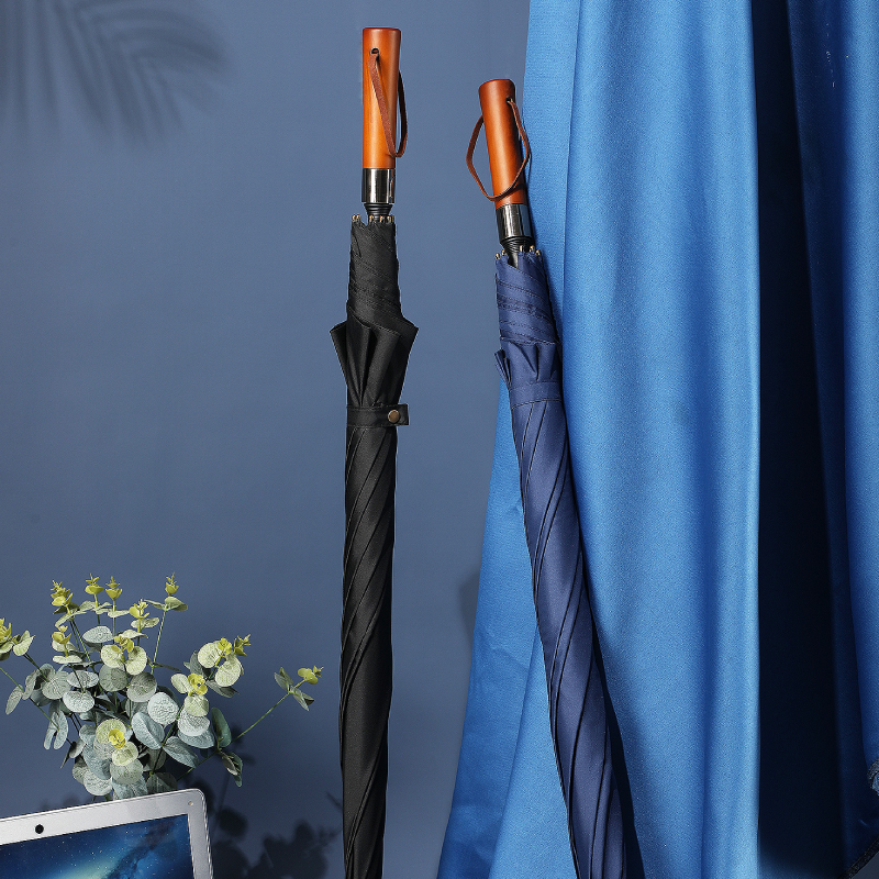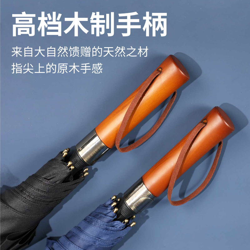 Men's business 8-bone long handle straight rod automatic open umbrella double umbrella oversized Japanese straight hook wooden handle wind-resistant umbrella