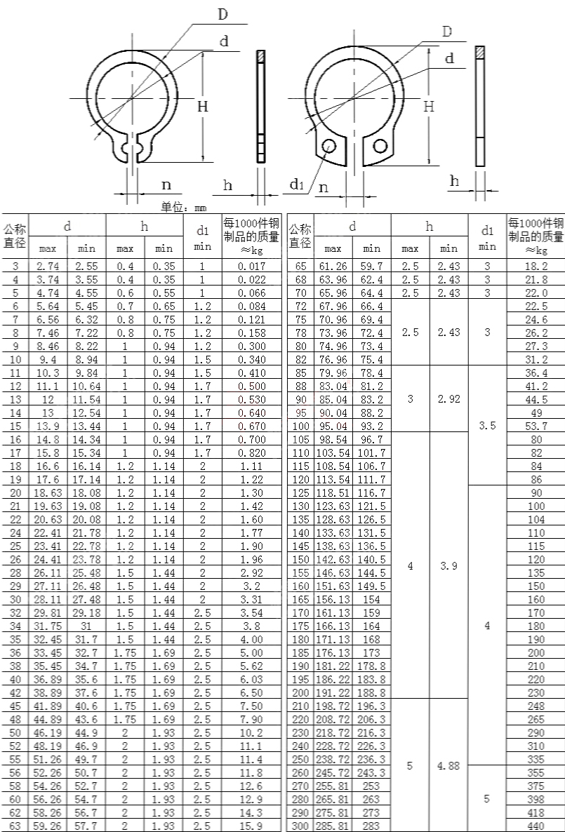 GB894-2017 shaft with elastic C type clasp C type shaft with outer snap ring New national standard shaft with snap spring C type clasp 30-60