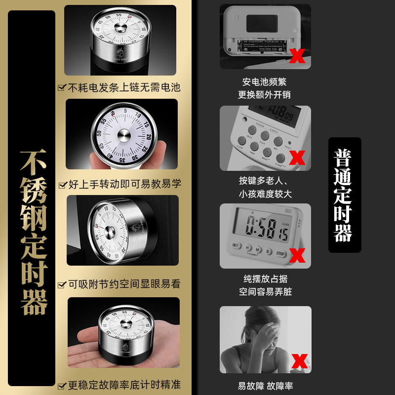 German Stainless Steel Timer Kitchen Machinery Student Time Management Reminder Countdown Baking Alarm Clock