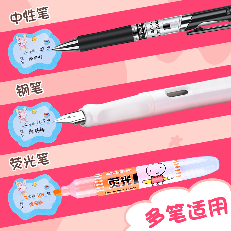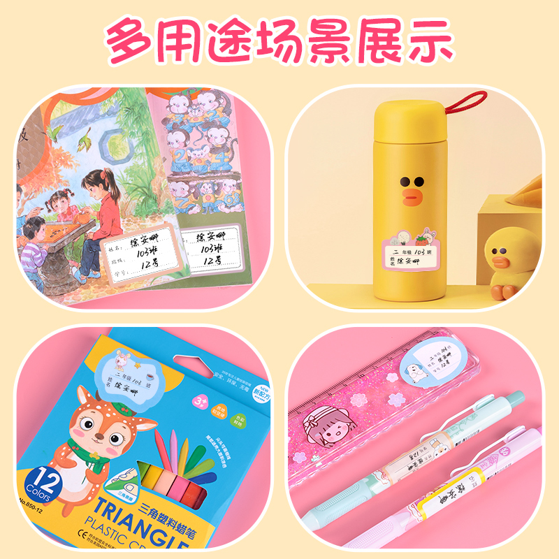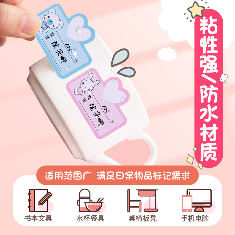 Children's name stickers cartoon cute waterproof self-adhesive handwritten waterproof label stickers kindergarten baby pupils quilt clothes classification mark stickers water cup textbook book class name stickers