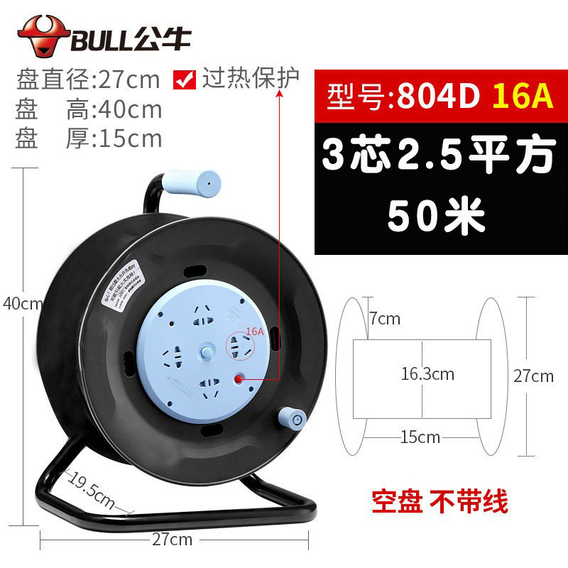 Bull cable reel electric vehicle charging extension cable reel with leakage protection 16A high power 50 100 meters