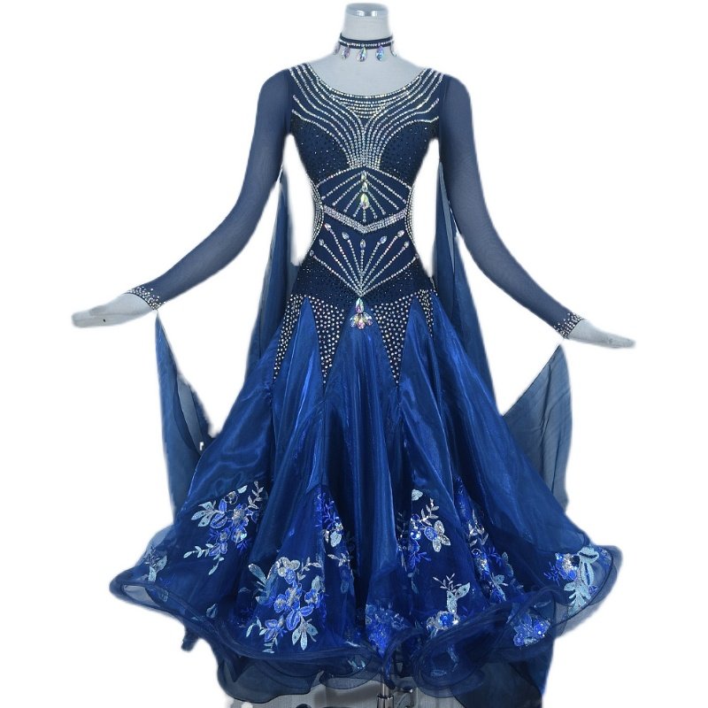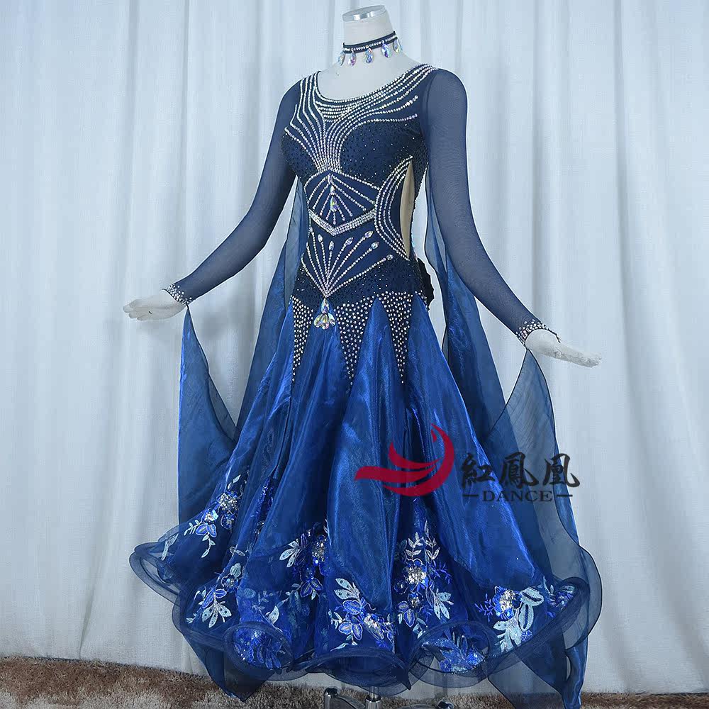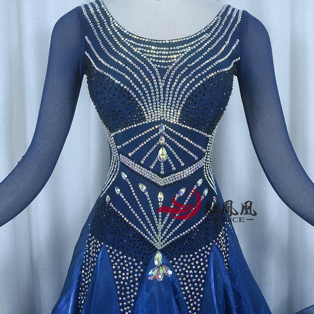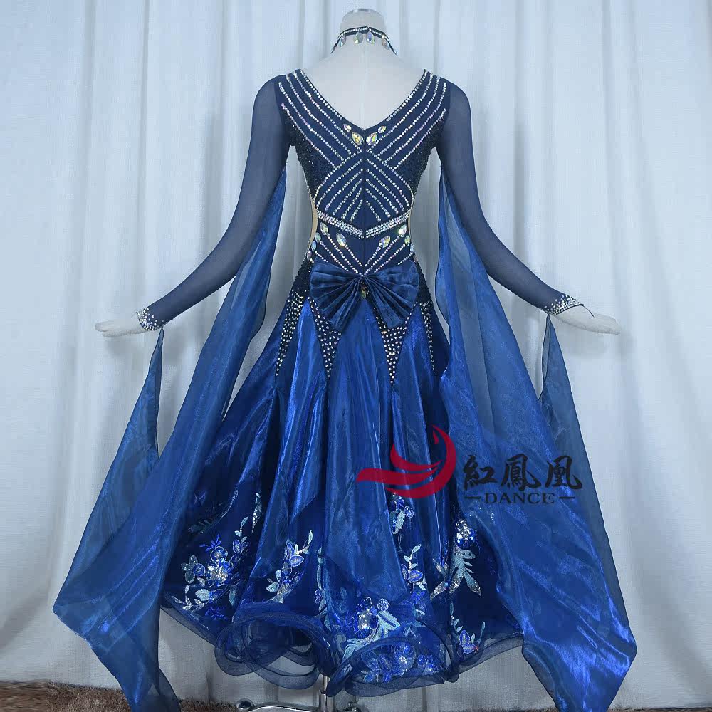 Red Phoenix manufacturer customizes Tibetan cyan Moden Dance Dress Competition Dress National Standard Waltz Fox Walk Out 1013