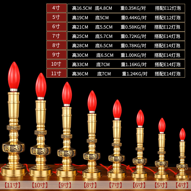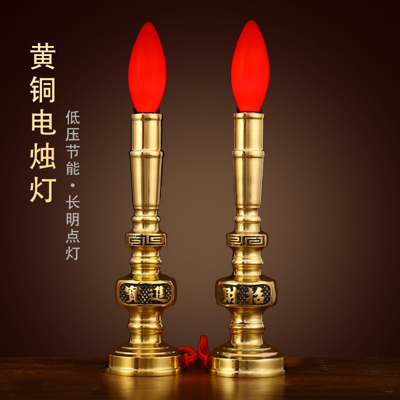 Theantai Electronic Candle Lamp Pure Brass Chaebol Lantern Buddha front for the lamp Changming lamp Home Worship Light Candle led lights-Taobao