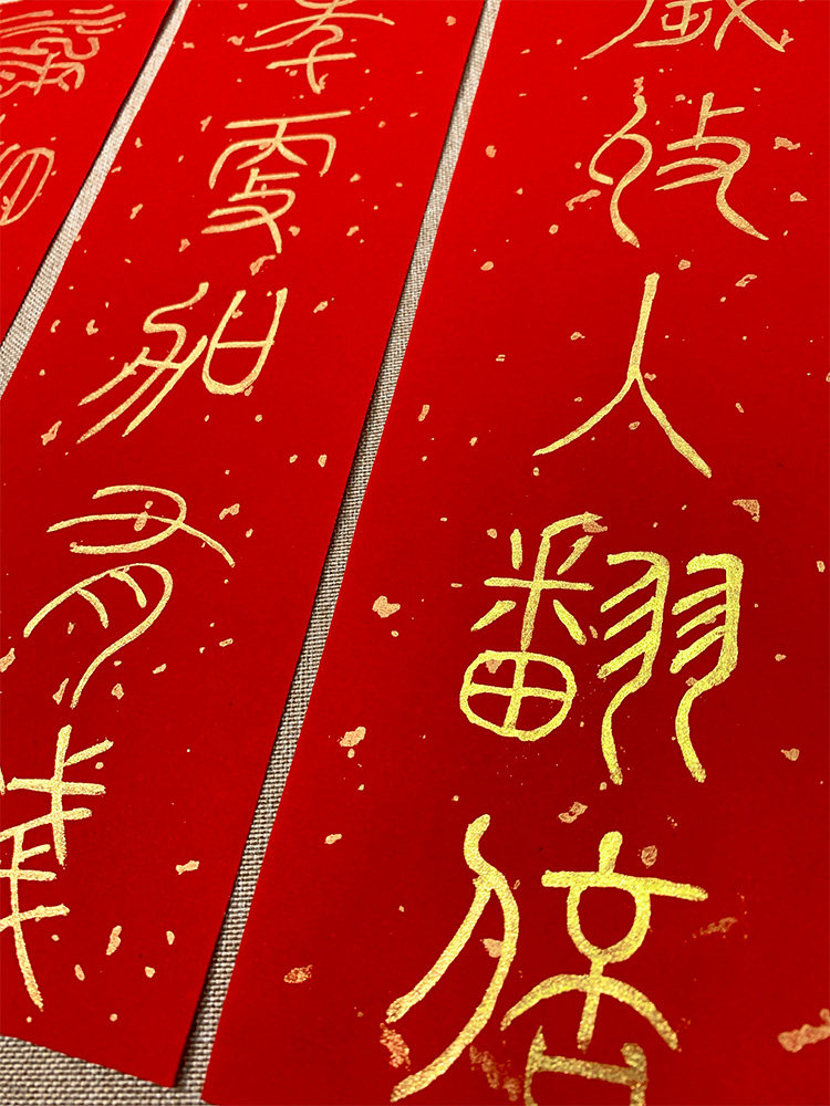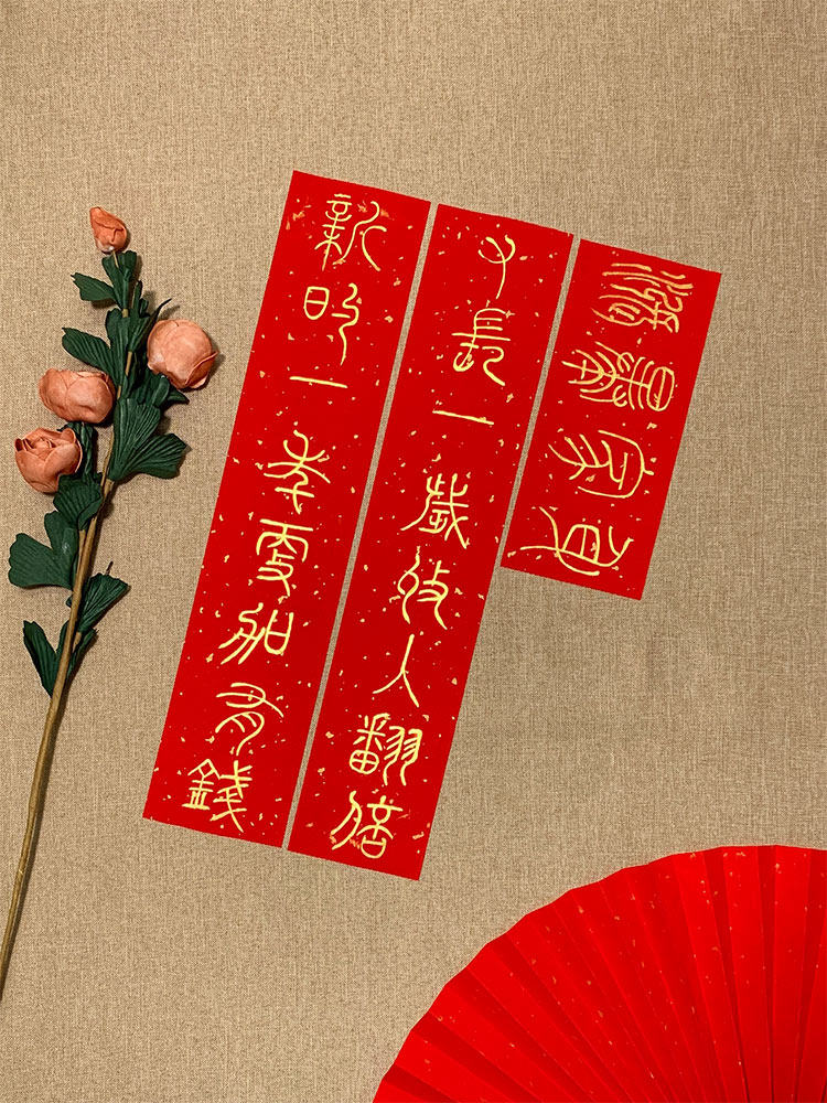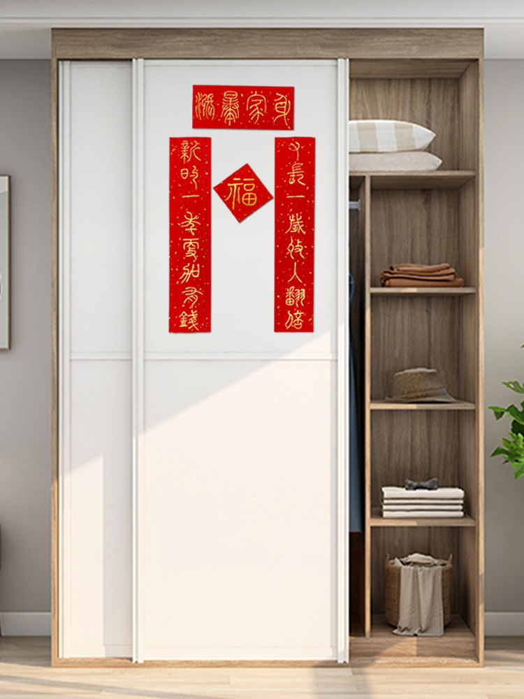 Small seal handwriting Mini Spring Festival couplets 2022 Tiger years Chinese New Year Golden Chinese character seal book Calligraphy Folk and Chinese small door stickup with freezer sticker