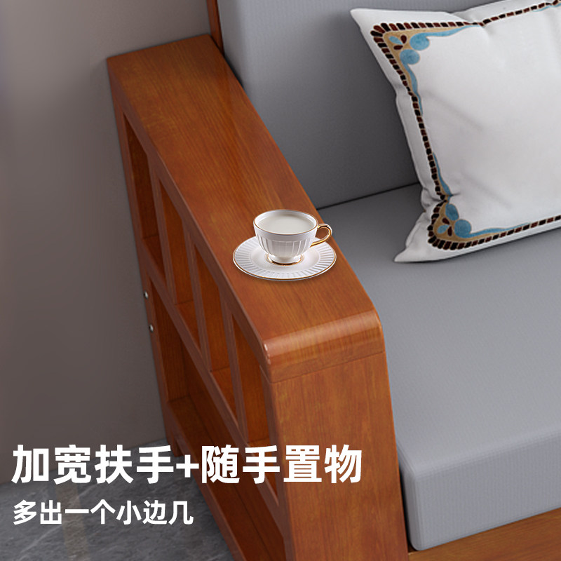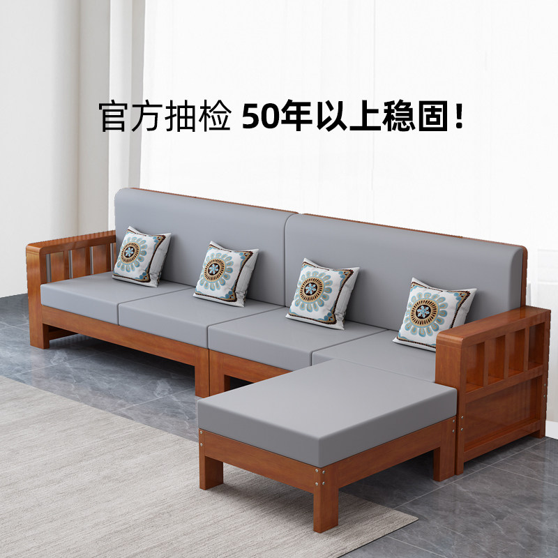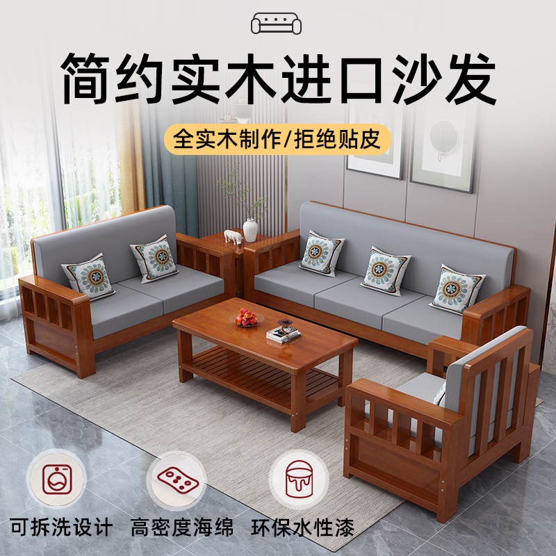 Solid wood sofa new Chinese style sofa combination modern simple winter and summer dual-use economical living room three-person wooden sofa