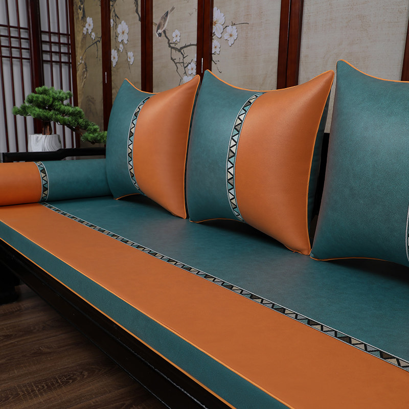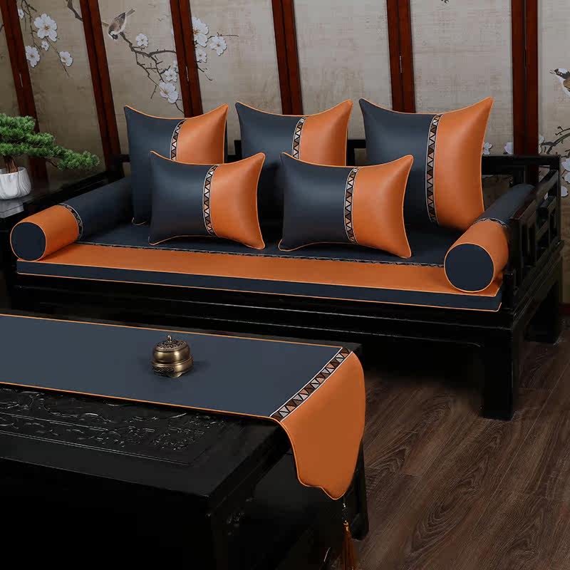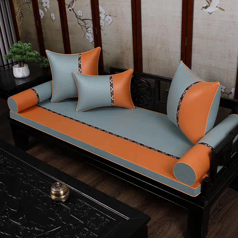 Mahogany sofa cushion cover imitation leather solid wood furniture latex seat cushion non-slip technology cloth Chinese Arhat bed customization