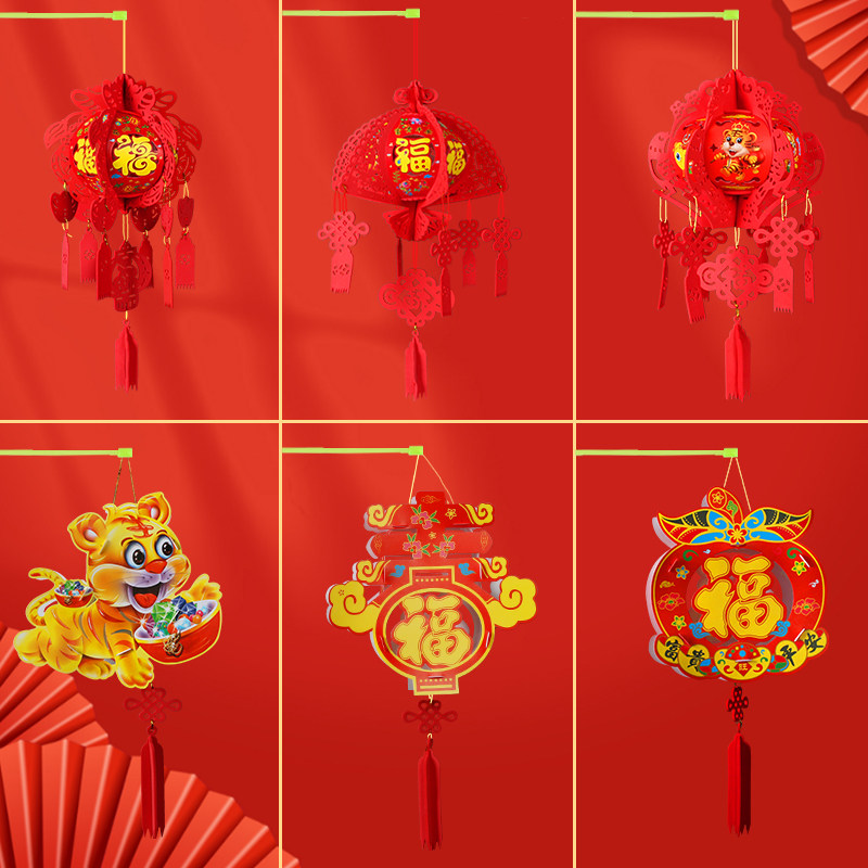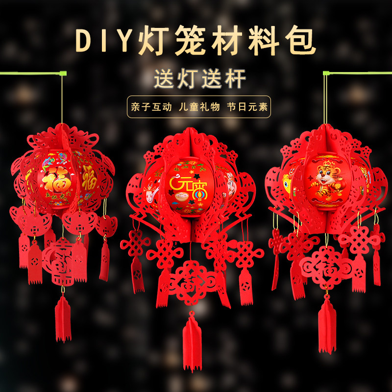 Lantern Festival lantern hanging palace lantern handmade diy material package kindergarten luminous children's cartoon little tiger lantern