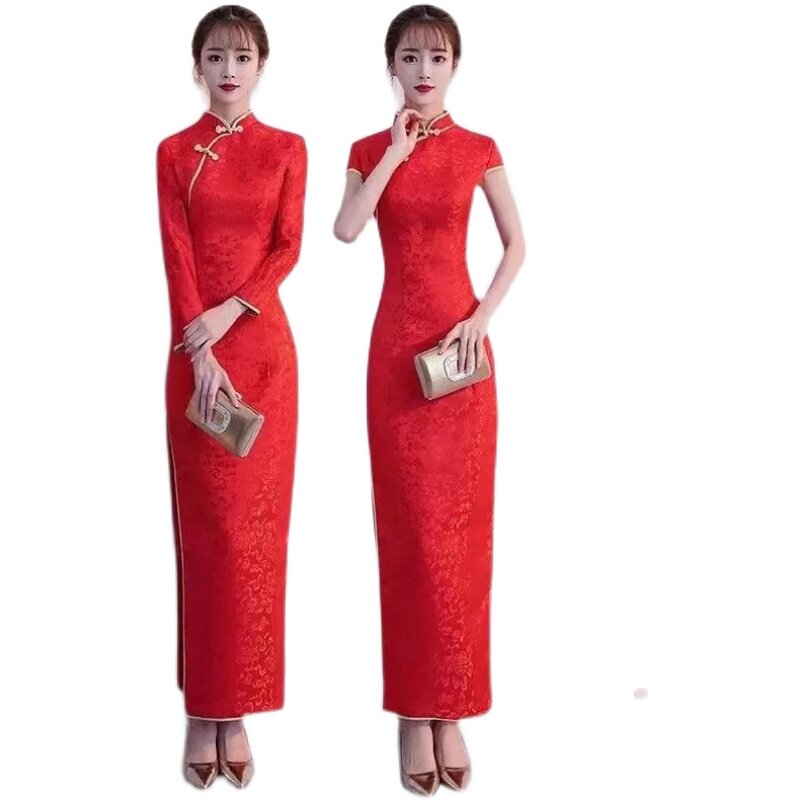 Long flag robes long skirt short sleeves Long sleeves Retro-tight flap-Taobao