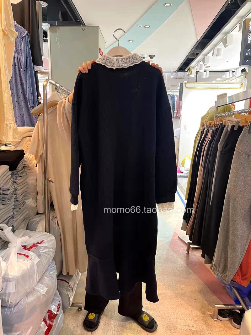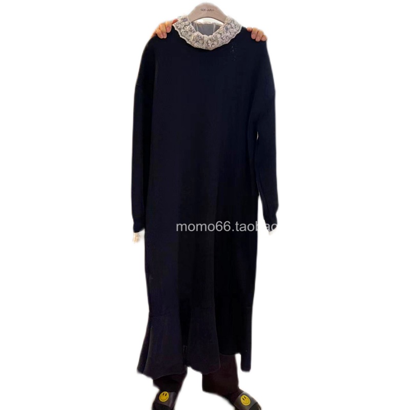 2021 Winter New Gestational Woman Dress Korea Fashion Commuter Lace Collar Soft Glutinous Knit Dresses Tail Foreign Dress