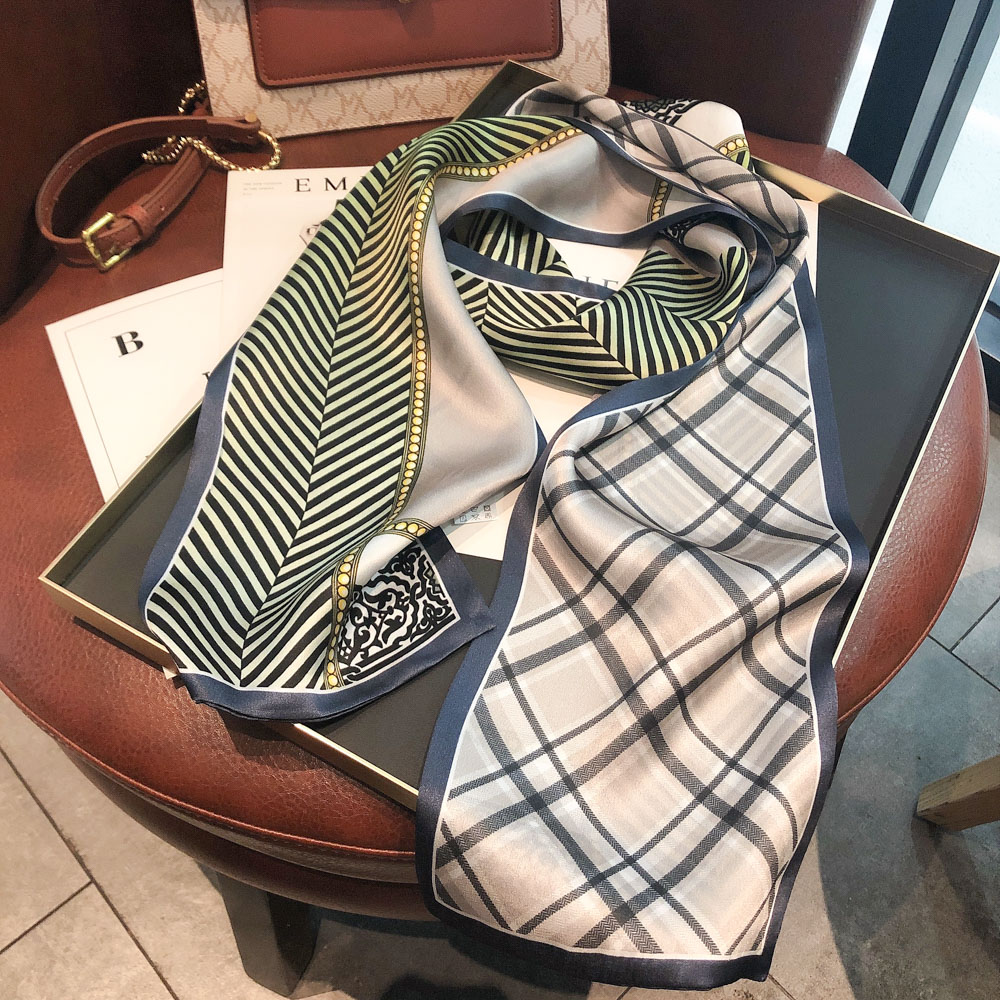 The temperament is simple and silk silk female spring and autumn thin 100 % sand silk long strip with windwear small tissue suit