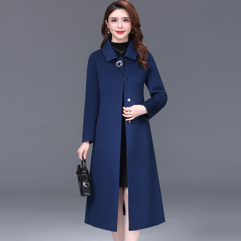Double - sided cashmere coat girl 2022 new autumn and winter high - end middle - and - long thin middle - aged mom wool coat