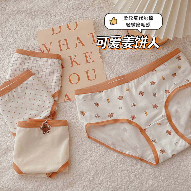 Girls underwear cute cartoon simple plaid polka dot modal cotton antibacterial mid-waist briefs gingerbread man