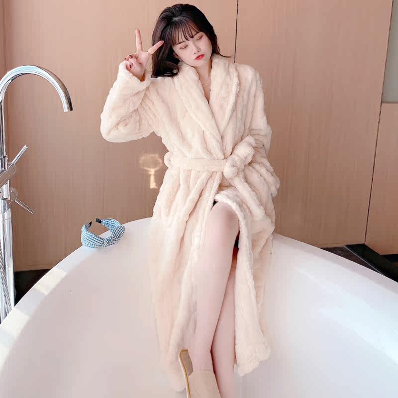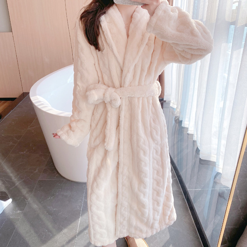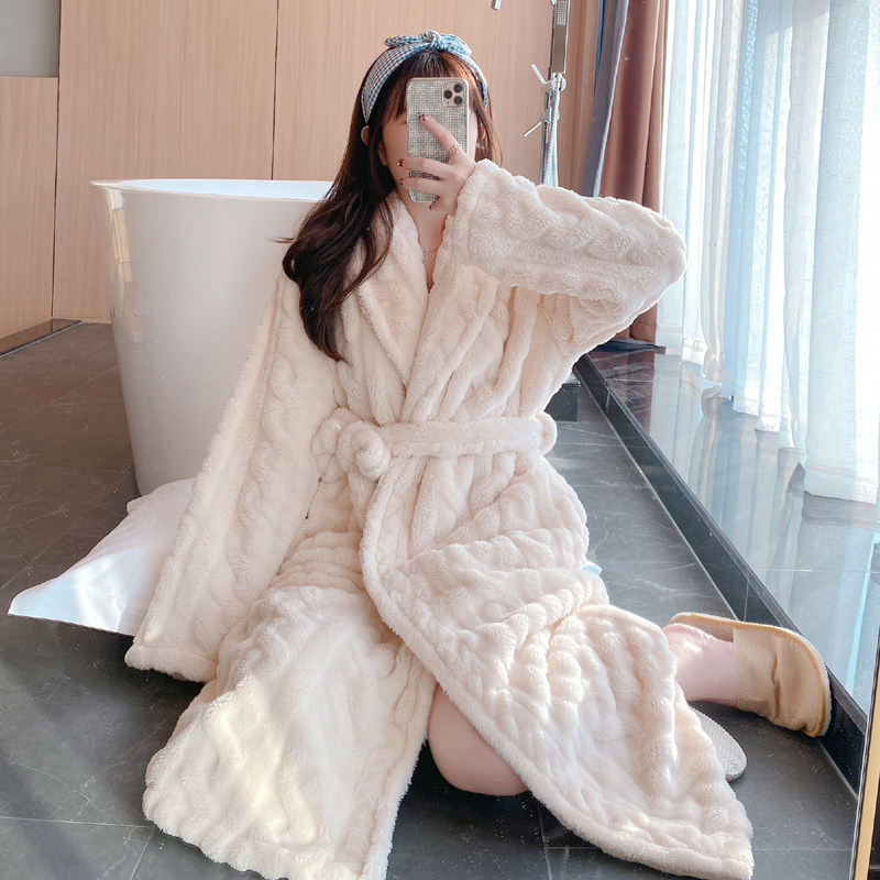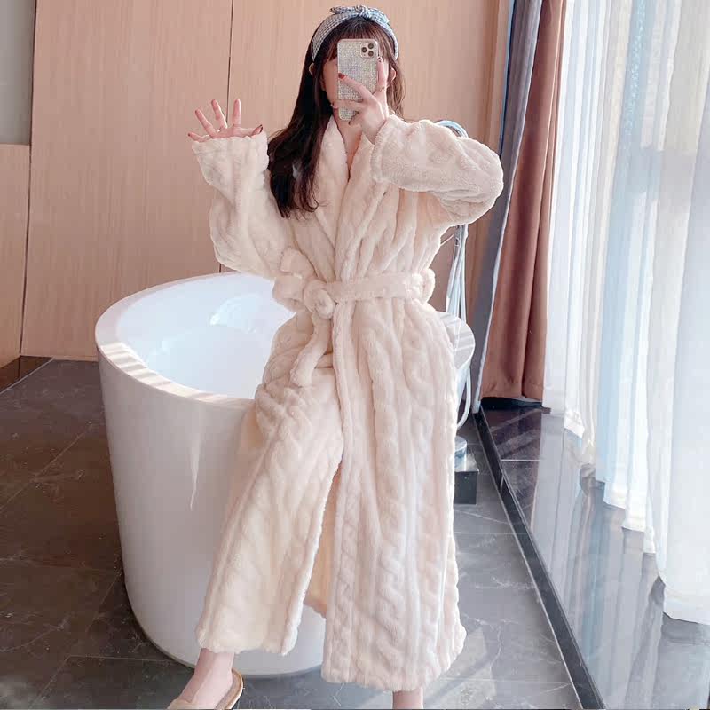 Pure Color Thickened Coral Suede Sleeping Gown Woman Autumn Winter Autumn Winter Sexy Warm Medium Long Version Pyjamas Palate Bathrobe Home Clothing