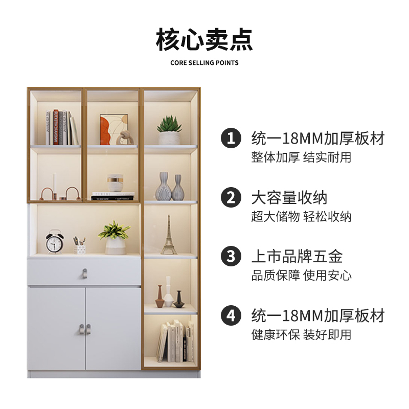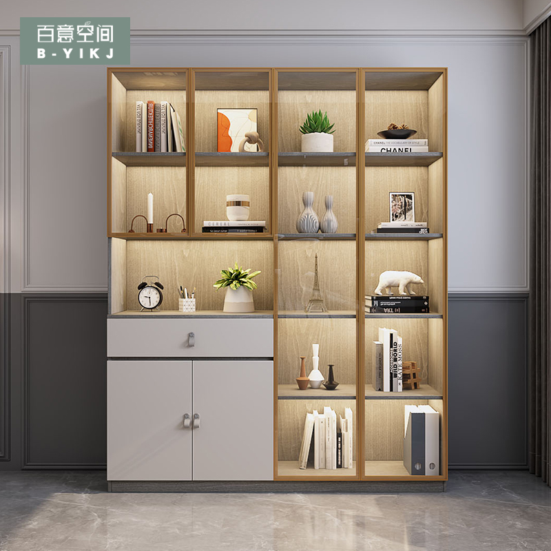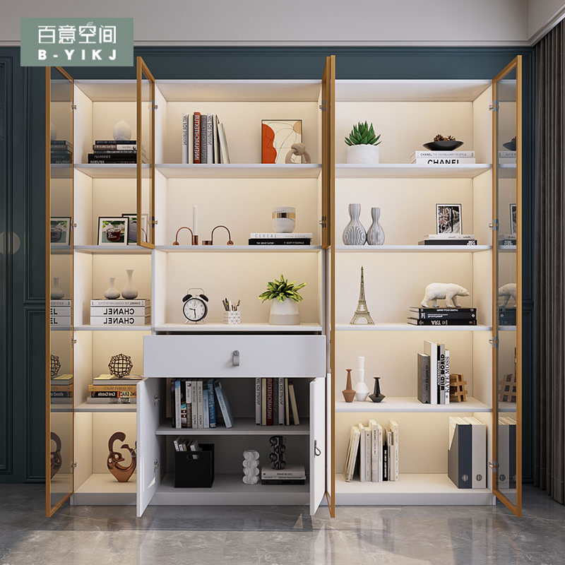 Light Lavish Glass Door Bookcase Shelves Nordic Bookcase Collection Cabinet Home Floor Leaning Wall Books Overall Closet Cupboard Display Cabinet