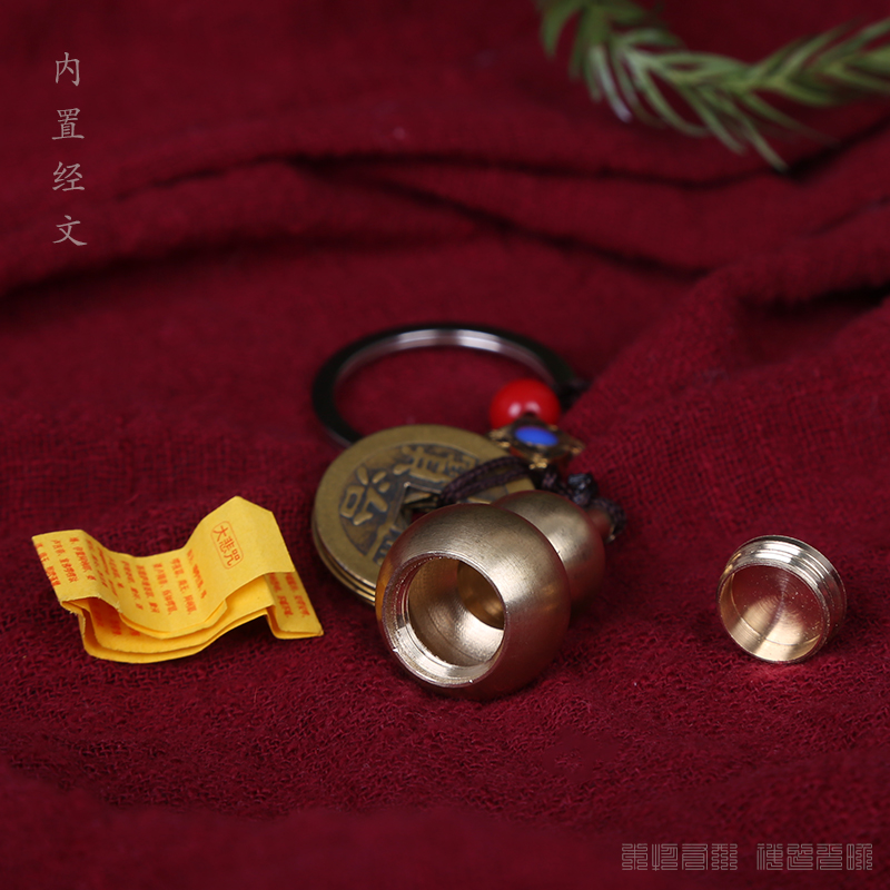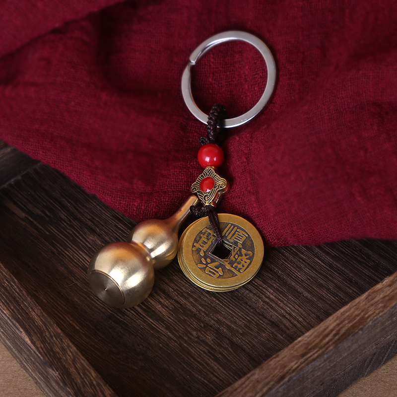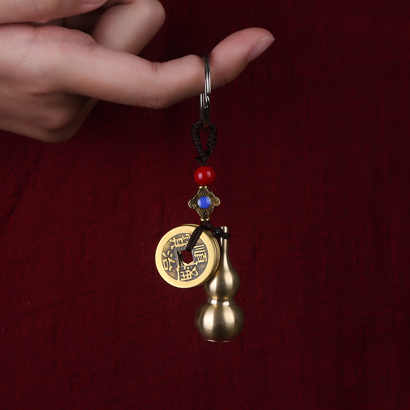 Pure brass gourd five emperor money keychain pendant