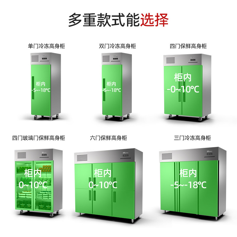 Two-door freezer Four-door double-machine double-temperature freezer Four-door freezer (direct cooling) Six-door freezer (direct cooling) Single-door freezer tall cabinet (direct cooling) Single-door freezer tall cabinet (air cooling) Double door
