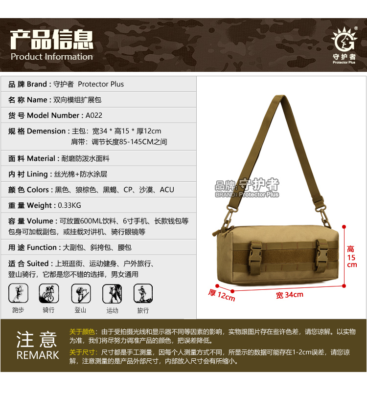 Guardian one-shoulder bag outdoor male deputy bag two-way module expansion bag MOLLE horizontal big pair bag messenger bag